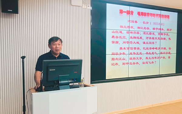 6月9日下午,我院旅游系邀請(qǐng)學(xué)院關(guān)工委主任韓祝疇,以《讀毛澤東詩(shī)詞 學(xué)黨百年歷史》為題,為該系黨總支第三支部全體黨員、發(fā)展對(duì)象、入黨積極分子以及高職一年級(jí)學(xué)生講授一堂生動(dòng)的黨史教育課。