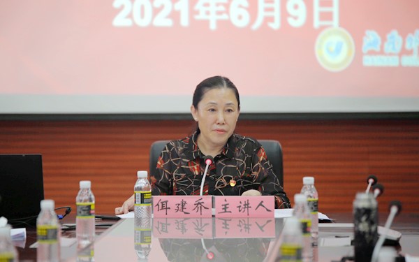 6月9日上午,我院黨委書記、黨史學(xué)習(xí)教育領(lǐng)導(dǎo)小組組長佴建喬在綜合樓七樓會議室(一)主講題為《從百年黨史中進(jìn)一步堅定理想信念不忘初心使命 繼續(xù)砥礪前行》黨課。全體在家的學(xué)院領(lǐng)導(dǎo)班子成員、中層干部聆聽了黨課。