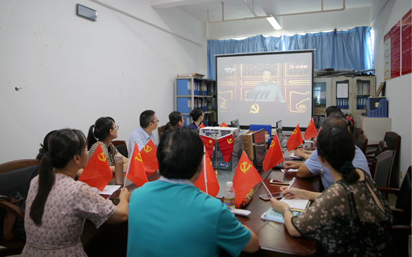 學(xué)院黨委書(shū)記佴建喬,院長(zhǎng)李渝鳳,副院長(zhǎng)楊學(xué)前,紀(jì)委書(shū)記、省監(jiān)委駐學(xué)院監(jiān)察專(zhuān)員黃培怡,副院長(zhǎng)梁松,以及機(jī)關(guān)各部門(mén)全體人員在綜合樓7樓會(huì)議室(一)通過(guò)視頻直播收看慶祝大會(huì)實(shí)況。大家認(rèn)真聆聽(tīng)習(xí)近平總書(shū)記重要講話,并做了詳細(xì)記錄。各系部黨總支部(直屬黨支部)根據(jù)學(xué)院黨委統(tǒng)一安排,在AE101報(bào)告廳、圖書(shū)館多功能報(bào)告廳、系部會(huì)議室等多個(gè)場(chǎng)地,組織廣大黨員和師生集中收看慶祝大會(huì)實(shí)況。