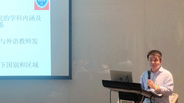 王展鵬教授則以“國(guó)別和區(qū)域研究在外語教師發(fā)展中的作用”為題為參會(huì)教師們開拓思路。王展鵬教授主要從“國(guó)別和區(qū)域研究的學(xué)科內(nèi)涵及其與外語學(xué)科的關(guān)系、國(guó)別和區(qū)域研究與外語教師發(fā)展、海南自由貿(mào)易港建設(shè)背景下國(guó)別和區(qū)域研究的價(jià)值”等三個(gè)方面進(jìn)行發(fā)言,與大家分享了外語學(xué)科在國(guó)別和區(qū)域研究發(fā)展中的優(yōu)勢(shì)、不足,在國(guó)別和區(qū)域研究中外語教師該如何發(fā)展,最后結(jié)合海南自貿(mào)港建設(shè)談到外語教師在國(guó)別和區(qū)域研究上肩負(fù)著什么樣的使命與價(jià)值。王展鵬教授的發(fā)言不僅拓寬了大家在國(guó)別與區(qū)域研究上的國(guó)際視野,為大家提供了跨學(xué)科、全方位、全領(lǐng)域的教學(xué)發(fā)展思路,為海南外語教育跨學(xué)科、跨院校之間交流與發(fā)展開拓了創(chuàng)新思想,推動(dòng)了海南外語教師在國(guó)別和區(qū)域研究上的進(jìn)一步發(fā)展,并提出海南自貿(mào)港建設(shè)背景下外語教育具有“實(shí)踐者與研究者”的雙重身份,讓大家深受啟發(fā)與鼓舞。
