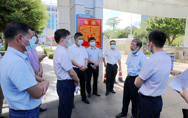 8月26日下午,省教育廳副廳長黎岳南率隊到我院檢查指導開學準備及疫情防控工作。省教育廳相關處室、文昌市教育局等督導檢查組人員同行參加。我院楊學前副院長、梁松副院長以及學院疫情防控工作相關負責同志陪同檢查。