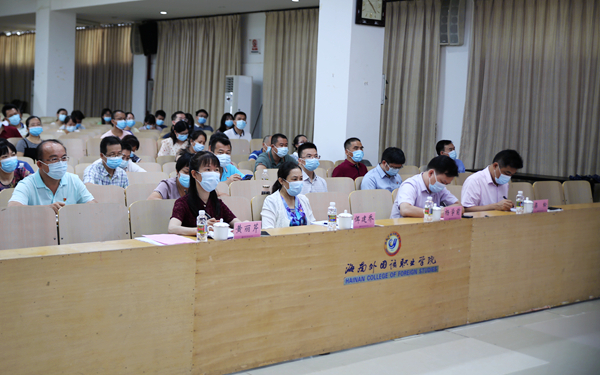 學(xué)院黨委書記佴建喬,黨委副書記、院長楊學(xué)前,黨委副書記黃麗芹,黨委委員、副院長梁松,以及全體中層干部、教職工黨員和機(jī)關(guān)管理干部聆聽報(bào)告會(huì)。黨委副書記黃麗芹主持報(bào)告會(huì)。