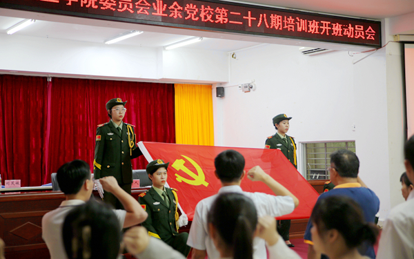 在《國際歌》慷慨旋律中,開班動員會正式開始。全體黨員在黨旗下宣誓,重溫入黨誓詞。