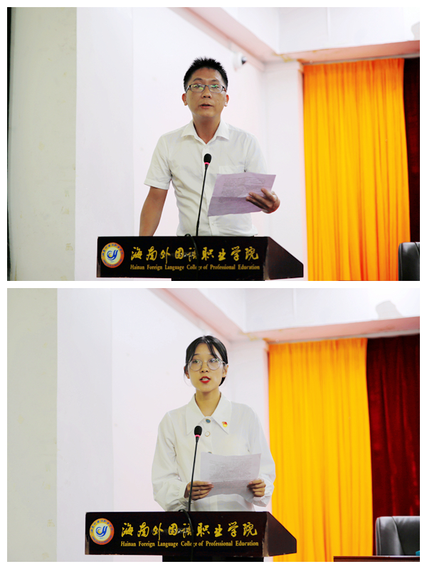 會上,入黨積極分子、旅游系謝孟老師作表態(tài)發(fā)言,表示要時刻嚴格要求自己,努力學習黨的理論,以實際行動爭取早日加入中國共產(chǎn)黨,為黨的事業(yè)奮斗終身。黨員代表、英語系張蕓源同學表示,作為一名新黨員,要以優(yōu)秀黨員的身份時刻嚴格要求自己,擔當起黨員先鋒的模范作用。
