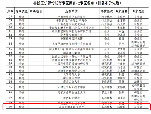 為推動(dòng)魯班工坊高質(zhì)量建設(shè)和可持續(xù)發(fā)展,共同打造中國(guó)職業(yè)教育走向國(guó)際的知名品牌,魯班工坊建設(shè)聯(lián)盟組建首批專家?guī)欤瑸轸敯喙し豁?xiàng)目認(rèn)定和后續(xù)工作提供專業(yè)支持。我院楊學(xué)前院長(zhǎng)成功入選魯班工坊建設(shè)聯(lián)盟首批專家?guī)?,充分體現(xiàn)了學(xué)院國(guó)際化辦學(xué)的社會(huì)影響力得到進(jìn)一步提升,將為學(xué)院今后進(jìn)一步加強(qiáng)開放式辦學(xué),構(gòu)建更全方位、更寬領(lǐng)域、更高層次、更高質(zhì)量的教育對(duì)外開放格局創(chuàng)造有利條件,對(duì)促進(jìn)面向國(guó)家“一帶一路”建設(shè)和海南自由貿(mào)易港建設(shè)開展國(guó)際化高素質(zhì)應(yīng)用型外語人才培養(yǎng),打造更具特色、更高水平的“外”字創(chuàng)新品牌具有十分重要的意義。