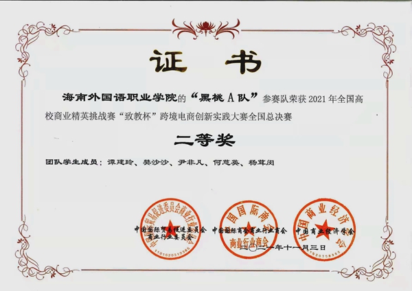 近日,2021年全國高校商業(yè)精英挑戰(zhàn)賽“致教杯”跨境電商創(chuàng)新實(shí)踐大賽全國總決賽落下帷幕,我院國際商務(wù)系學(xué)生譚建玲、樊沙沙、尹非凡、何慈英、楊茸閔組成的“黑桃A隊(duì)”參賽團(tuán)隊(duì)在全國總決賽中榮獲二等獎。廖完美、陳雪花老師榮獲優(yōu)秀指導(dǎo)教師獎。