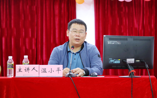 為進一步加強學(xué)生愛國主義教育,厚植愛國主義情懷,12月8日下午,我院時事大講堂在多功能報告廳開講,海南大學(xué)黨委辦公室副主任、博士、副教授、博士生導(dǎo)師溫小平受邀作《習(xí)近平新時代海洋強國建設(shè)理論與實踐》主題講學(xué)。思想政治理論課教學(xué)部主任兼直屬黨支部書記周清云主持講座。