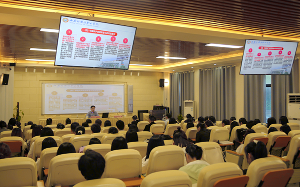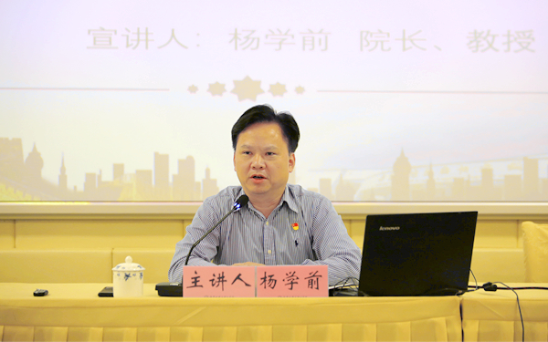 12月16日下午,我院黨委副書(shū)記、院長(zhǎng)楊學(xué)前在綜合樓BE101為人文藝術(shù)系師生宣講黨的十九屆六中全會(huì)精神。