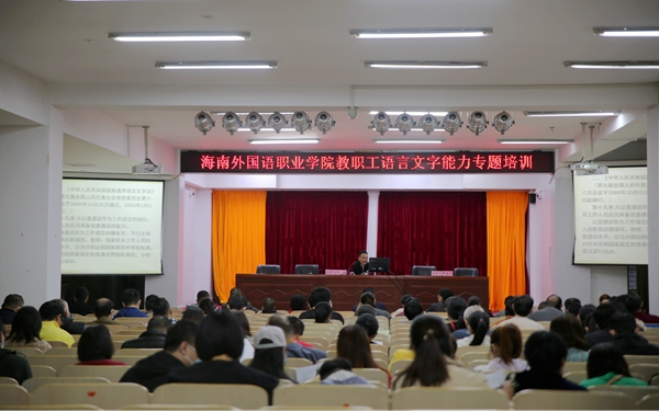 為提高我院教職工的普通話水平,進一步增強我院教職工的語言文字規(guī)范意識,促進語言文字的規(guī)范化使用,12月22日下午,我院在圖書館多功能報告廳開展教職工語言文字規(guī)范專題培訓。學院黨委委員、副院長梁松出席培訓活動,全體中層干部、科級干部、機關行政管理人員、全體教師等參加培訓。