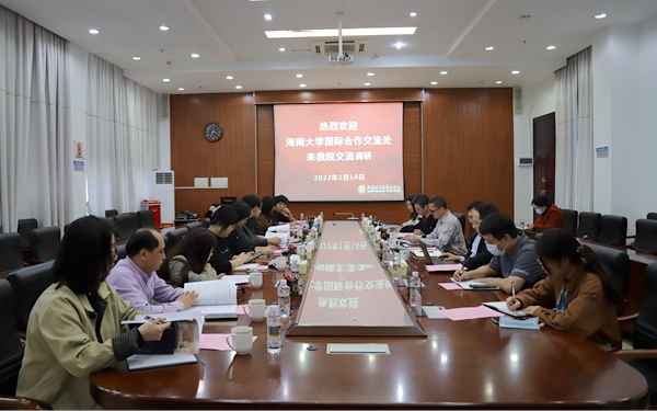 1月14日下午,海南大學(xué)國(guó)際合作交流處處長(zhǎng)楊志昕、副處長(zhǎng)劉亮一行十人訪問(wèn)海南外國(guó)語(yǔ)職業(yè)學(xué)院,圍繞國(guó)際教育交流與合作等工作進(jìn)行調(diào)研交流。雙方在綜合樓七樓會(huì)議室(一)舉行交流座談會(huì)。海南外國(guó)語(yǔ)職業(yè)學(xué)院黨委委員、副院長(zhǎng)楊毅,教務(wù)處處長(zhǎng)王征,東語(yǔ)系黨總支副書(shū)記王詒奎,以及部分教師代表參加交流。學(xué)院國(guó)際交流中心外事科科長(zhǎng)陳建奇主持會(huì)議。