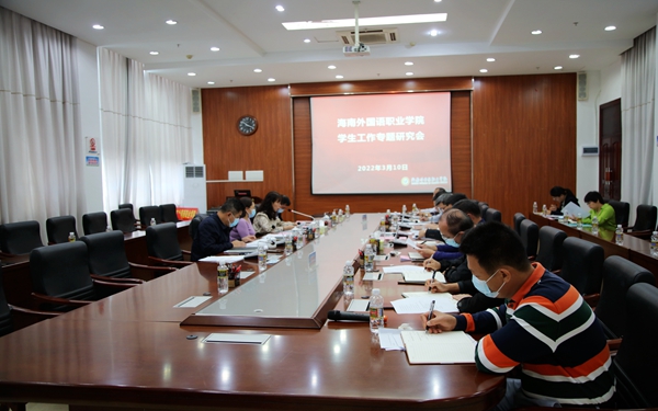 3月10日上午,海南外國語職業(yè)學(xué)院在綜合樓七樓會(huì)議室(一)召開學(xué)生工作專題研究會(huì),研究部署學(xué)院學(xué)生工作。學(xué)院黨委書記佴建喬出席會(huì)議并講話。黨委副書記黃麗芹,黨委委員、副院長梁松,黨委委員、副院長楊毅出席會(huì)議。會(huì)議由黃麗芹副書記主持。