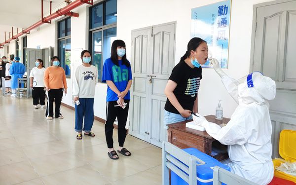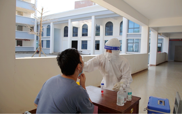 在“藍胖子”們的引導下,全院師生分時段、分系部、錯峰進行檢測。同學們紛紛表示,“整個檢測流程規(guī)范、高效”“很快完成了采樣,沒有不適的感覺”。