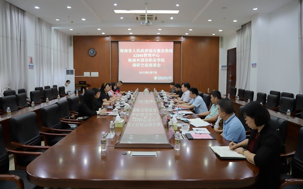 5月7日上午,海南省人民政府綜合服務熱線12345管理中心一級調(diào)研員符鳳蓮率隊到海南外國語職業(yè)學院調(diào)研。學院黨委副書記、院長楊學前參加調(diào)研座談。