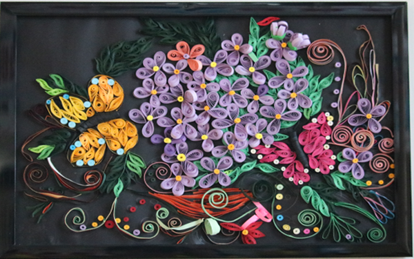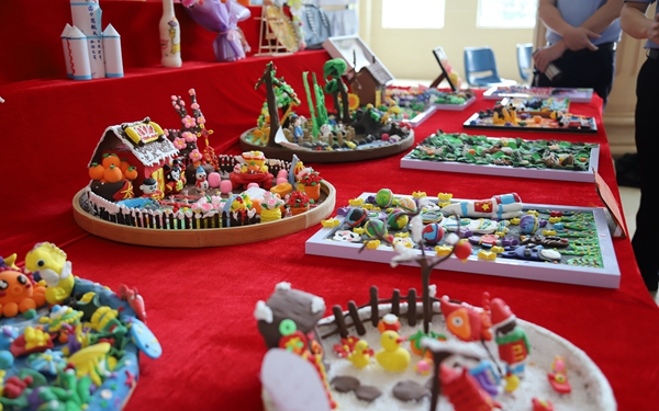 此次展出的作品琳瑯滿目,有繪畫、折紙、剪紙、手工刺繡等手工藝品,每件作品表達(dá)的寓意各有不同。