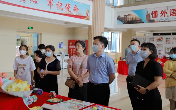5月11日,黨委副書記、院長楊學(xué)前蒞臨現(xiàn)場參觀指導(dǎo),英語系黨政班子、專業(yè)負(fù)責(zé)人、教研室主任、指導(dǎo)教師參與陪同展覽活動。