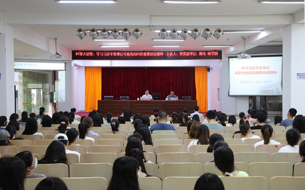 為深入學習宣傳貫徹習近平總書記考察海南時的重要講話精神,推動習近平總書記考察海南時的重要講話精神進課堂,近日,海南外國語職業(yè)學院黨委書記佴建喬,黨委副書記、院長楊學前,黨委副書記黃麗芹,黨委委員、紀委書記、省監(jiān)委駐學院監(jiān)察專員黃培怡,黨委委員、副院長梁松,黨委委員、副院長楊毅等領導班子成員先后走上講臺,為學生講授“學習習近平總書記考察海南時的重要講話精神”專題講座。學院各系部近1200名師生到場聽課。