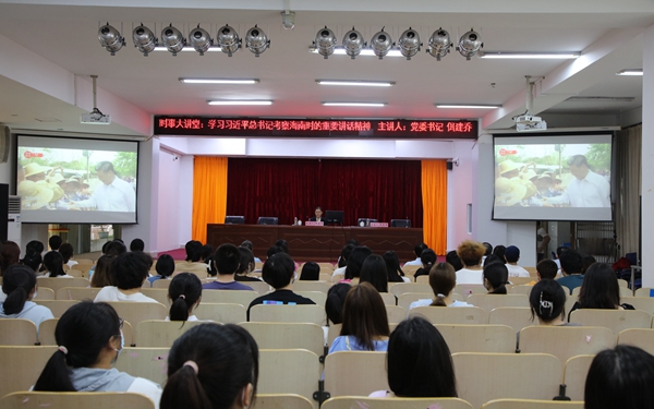 各位學院領導從習近平總書記的海南情緣說起,為學生講授了習近平總書記四十多年來和海南人民結下的深厚情緣,分析了2018年“4·13”重要講話以來海南的發(fā)展,并重點講授了習近平總書記本次考察海南主要行程與重要講話精神。講授中,結合學院和學生的實際,從不同角度,采用理論講述、案例分析、研討互動等多種方式進行,引起了師生們濃厚的興趣和熱情,激發(fā)了師生們的愛國情和報國志,堅定了建設中國特色社會主義和海南自由貿(mào)易港的信心。師生們紛紛表示,將以習近平總書記考察海南時的重要講話精神為指引,積極投身于海南自由貿(mào)易港建設和中國特色社會主義建設,以實際行動踐行新時代海外院人的責任與擔當。