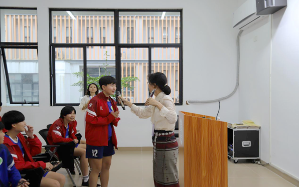 5月17日下午,我院外教團隊走進瓊中女足,給瓊中女足帶來一場“外語世界杯”。外教們“輪番上陣”,教授英語、葡萄牙語、阿拉伯語、泰語、日語、韓語、越南語、柬埔寨語、印尼語、老撾語……瓊中女足們“兵來將擋”,活潑開朗地應(yīng)對每一門外語,積極與每一位外教互動,就像她們在球場上沉穩(wěn)面對每一次傳球、接球一樣。