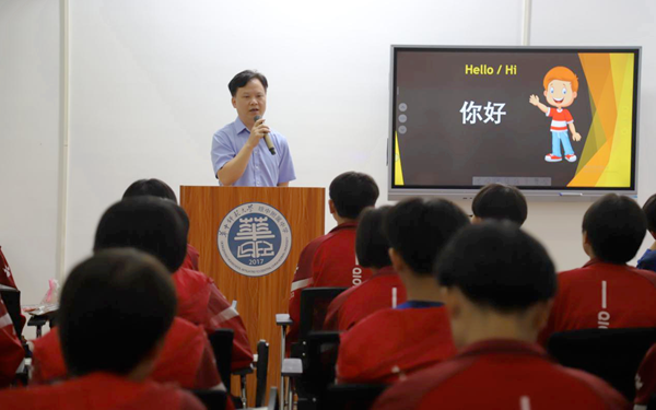 “海南外國語職業(yè)學(xué)院作為全省外語最多的高校,以服務(wù)國家‘一帶一路’倡議和海南自由貿(mào)易港為己任。今天,我們的外教團隊們走進瓊中,服務(wù)女足,是為了幫助瓊中女足‘插上外語的翅膀’,助力瓊中女足更好地走向世界!”海南外國語職業(yè)學(xué)院黨委副書記、院長楊學(xué)前在講話中說到。