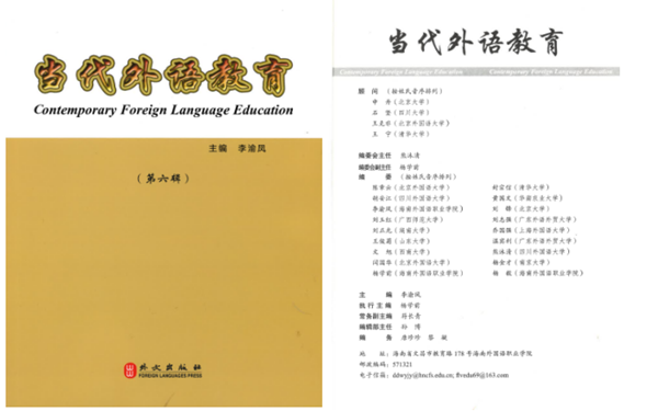 《當(dāng)代外語教育》稿件來源采取約稿與作者自由來稿兩種方式。截至目前,已由外文出版社出版發(fā)行6輯,共刊發(fā)外語教育研究、外語教學(xué)研究、語言研究、翻譯研究、文學(xué)研究、東南亞語言文化研究等領(lǐng)域的學(xué)術(shù)論文百余篇。其中,“名家特稿”和“專家筆談”兩個(gè)欄目收錄了教育部“長(zhǎng)江學(xué)者”特聘教授、博士生導(dǎo)師黃國(guó)文教授、清華大學(xué)博士生導(dǎo)師封宗信教授、西南大學(xué)博士生導(dǎo)師文旭教授、湖南大學(xué)博士生導(dǎo)師劉正光教授、湖南師范大學(xué)博士生導(dǎo)師廖光蓉教授以及美國(guó)加州州立大學(xué)奇科分校張愛平教授等國(guó)內(nèi)外知名專家學(xué)者的專稿,產(chǎn)生了一定的學(xué)術(shù)影響力,為廣大外語教育工作者提供了交流對(duì)話的平臺(tái),成為一方具有特色的外語教育研究園地。