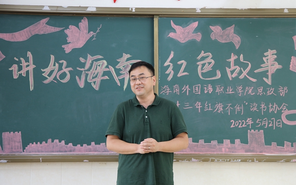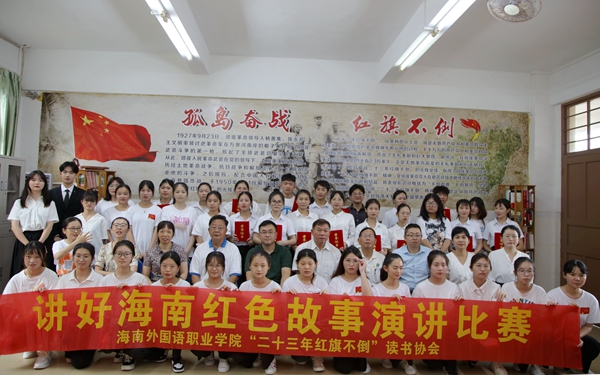 為全面貫徹落實習近平考察海南重要講話和海南省第八次黨代會精神,結(jié)合海南“二十三年紅旗不倒”的瓊崖革命精神和海南自由貿(mào)易港建設(shè)的相關(guān)文件精神,2022年5月27日下午海南外國語職業(yè)學院“二十三年紅旗不倒讀書協(xié)會”在2203教室舉行“講好海南紅色故事”演講大賽決賽,學院黨委委員、副院長楊毅蒞臨指導。本次比賽由協(xié)會指導教師趙佳鈺策劃、組織并實施,經(jīng)過初賽選出14名選手進入最終的決賽。關(guān)工委韓祝疇主任、莫運深副主任、思政部周清云主任、關(guān)工委陳獻積老師,思政部周麗萍老師、張敏老師、吳啟鳳老師出席本次決賽并擔任評委。