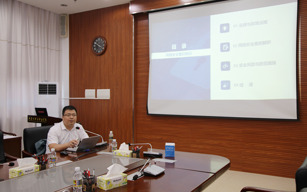 隨后,海南省第三方機(jī)構(gòu)網(wǎng)絡(luò)安全高級顧問、高級工程師謝大貴從網(wǎng)絡(luò)安全相關(guān)政策法規(guī)解讀、網(wǎng)絡(luò)案例分析、安全風(fēng)險與防范措施等方面為各部門負(fù)責(zé)人、各系部黨總支書記及全體機(jī)要人員、網(wǎng)絡(luò)信息管理員、網(wǎng)絡(luò)信息中心人員進(jìn)行了網(wǎng)絡(luò)安全培訓(xùn)。