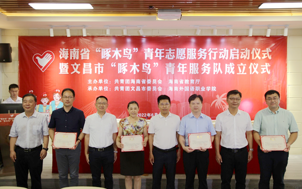 6月16日上午,由團(tuán)省委、省教育廳主辦的海南省“啄木鳥”青年志愿服務(wù)行動(dòng)在海南外國語職業(yè)學(xué)院啟動(dòng)。當(dāng)日,我省首支“啄木鳥”青年志愿服務(wù)隊(duì)——文昌市“啄木鳥”青年志愿服務(wù)隊(duì)在我院正式成立。