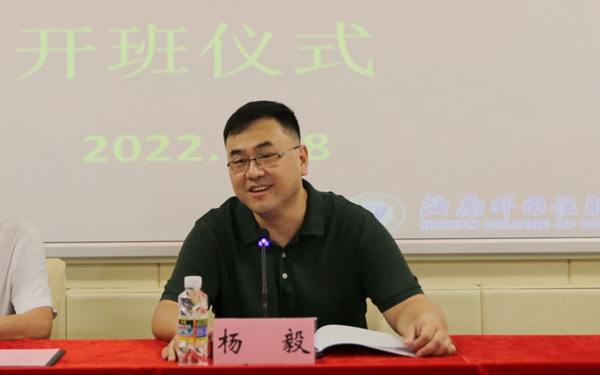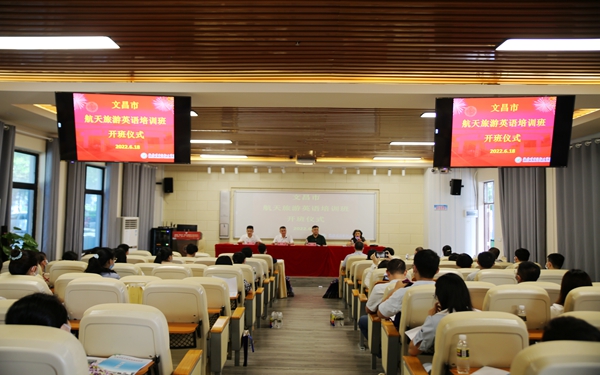 開班儀式上,楊毅代表學(xué)院對(duì)參加本次航天旅游英語(yǔ)學(xué)習(xí)班的學(xué)員表示歡迎,并簡(jiǎn)要介紹了學(xué)院辦學(xué)成果及發(fā)揮外語(yǔ)教育、職業(yè)教育優(yōu)勢(shì)服務(wù)海南自由貿(mào)易港建設(shè)和文昌國(guó)際航天城發(fā)展情況。他指出,全面提升公民外語(yǔ)水平是我省自由貿(mào)易港建設(shè)的基礎(chǔ)性工程,是提升我省對(duì)外開放水平、國(guó)際形象和國(guó)際影響力的“門面招牌”,也是優(yōu)化我省國(guó)際化營(yíng)商環(huán)境的重要前提。他表示,學(xué)院將認(rèn)真結(jié)合《2020—2025年海南省全面提升公務(wù)員外語(yǔ)水平行動(dòng)方案》要求,圍繞自由貿(mào)易港、國(guó)際航天城、旅游文化、“僑鄉(xiāng)”風(fēng)情以及招商引資、商務(wù)會(huì)議、外事禮儀等內(nèi)容,開展普及性英語(yǔ)培訓(xùn),并逐步開展專業(yè)性英語(yǔ)培訓(xùn),助力文昌市廣大干部成為海南自由貿(mào)易港和文昌國(guó)際航天城的宣傳員、招商員、實(shí)干家。