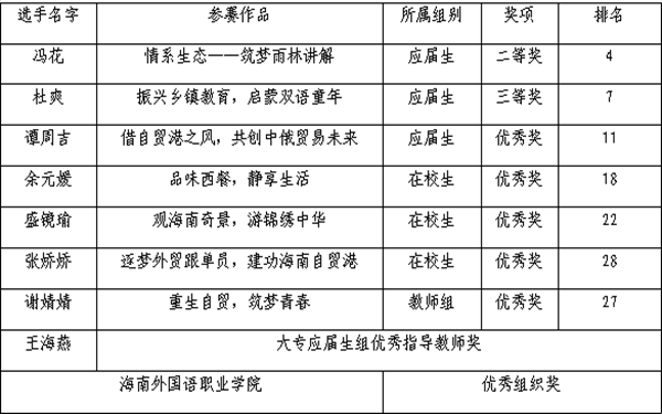 通過此次大賽,加強了我院學生就業(yè)創(chuàng)業(yè)觀念教育,促進畢業(yè)生高質(zhì)量就業(yè),引導畢業(yè)生積極投身海南自貿(mào)港建設