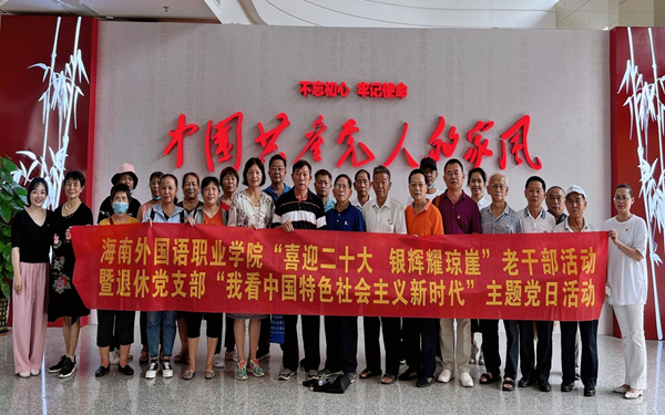 為慶祝建黨101周年、喜迎黨的二十大勝利召開,貫徹落實(shí)全國老干部工作“雙先”表彰大會和全國老干部局長會議精神,進(jìn)一步增強(qiáng)退休黨員干部的黨性修養(yǎng),中共海南外國語職業(yè)學(xué)院委員會于6月30日組織開展退休老干部“喜迎二十大 銀輝耀瓊崖”暨退休黨支部“我看中國特色社會主義新時代”主題黨日系列活動。
