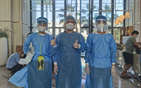 張泓、王琳淞、蘇小明在三亞酒店開展核酸信息核實工作