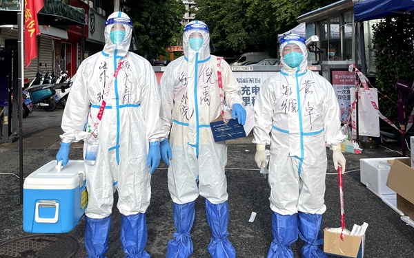 云瀟博在三亞市紅郊社區(qū)的志愿服務(wù)工作中,充分發(fā)揚聽指揮、敢擔(dān)當(dāng)?shù)墓ぷ髯黠L(fēng),認真完成社區(qū)居民核酸檢測、隔離點值班值守、生活物資分配等工作,得到了居委會干部的肯定。
