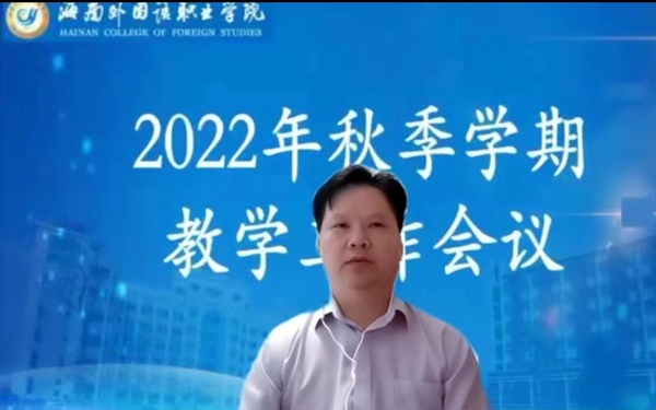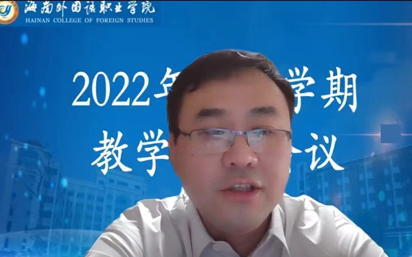 為保障新學(xué)期線上教學(xué)工作有序進(jìn)行,確保各項(xiàng)教學(xué)工作準(zhǔn)備到位,9月4日上午,海南外國語職業(yè)學(xué)院召開2022年秋季學(xué)期教學(xué)工作視頻會議。會議由黨委副書記、院長楊學(xué)前主持,黨委委員、副院長楊毅出席會議,教務(wù)處、教學(xué)指導(dǎo)委員會、教學(xué)督導(dǎo)委員會委員,各系部主任、教研室主任、教學(xué)秘書等參加會議。