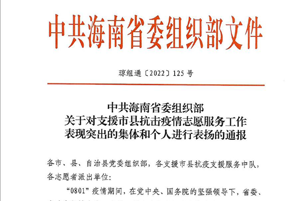 11月16日,中共海南省委組織部發(fā)布《關(guān)于對支援市縣抗擊疫情志愿服務(wù)工作表現(xiàn)突出的集體和個人進行表揚的通報》,對在“0801”疫情期間參與抗擊疫情志愿服務(wù)工作并表現(xiàn)突出的302個集體和515名個人予以通報表揚。