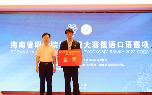 11月25日,由海南省教育廳、海南省人力資源和社會保障廳主辦,我校和海南省外語職業(yè)教育教學(xué)指導(dǎo)委員會承辦的2022年海南省職業(yè)院校技能大賽俄語口語賽項成功舉辦,共有來自全省4所高校的21名選手參加。我校西方語言學(xué)院王喬楚、王梓、王惠琪、丁福貴、楊沐梵、肖靈峰六名同學(xué)參加比賽。經(jīng)過三個環(huán)節(jié)激烈角逐,最終王喬楚同學(xué)斬獲比賽金獎。我校黨委副書記、校長楊學(xué)前觀摩比賽并為金獎獲得者頒獎。黨委委員、副校長楊毅出席比賽開幕式并致辭。我校學(xué)生在該項賽事中獲得佳績,充分展示了學(xué)生扎實的語言基本功、出色的俄語應(yīng)用能力,同時也展現(xiàn)了我校俄語教學(xué)的育人成果。