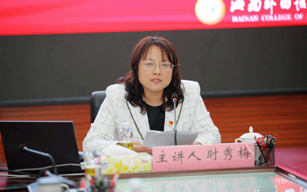 時(shí)秀梅結(jié)合黨的二十大報(bào)告,對“培養(yǎng)什么人、怎樣培養(yǎng)人、為誰培養(yǎng)人”““統(tǒng)籌職業(yè)教育、高等教育、繼續(xù)教育協(xié)同創(chuàng)新,推進(jìn)職普融通、產(chǎn)教融合、科教融匯,優(yōu)化職業(yè)教育類型定位”等內(nèi)容作了深入解讀,指出要進(jìn)一步促進(jìn)學(xué)用結(jié)合,打造外語特色品牌,加強(qiáng)畢業(yè)生就業(yè)質(zhì)量考核,進(jìn)一步提升辦學(xué)條件,在海南自貿(mào)港建設(shè)中更好發(fā)揮學(xué)校的外語特色和優(yōu)勢,助力海南自貿(mào)港建設(shè)獲得長足的發(fā)展。