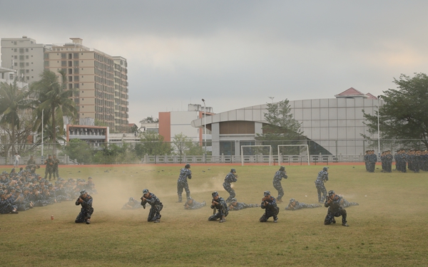 文昌市委常委、武裝部政委趙金路,武警海警第四支隊(duì)艦艇一大隊(duì)參謀連樹(shù)強(qiáng),學(xué)校黨委委員、副校長(zhǎng)梁松,黨委委員、副校長(zhǎng)楊毅出席總結(jié)大會(huì)。學(xué)生工作處處長(zhǎng)主持總結(jié)大會(huì)。