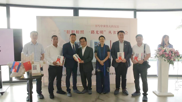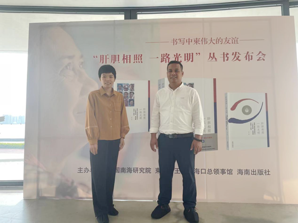 為了更好地促進(jìn)中國與柬埔寨的人文交流,呈現(xiàn)“中國海南·柬埔寨光明行”義診故事,2023年4月27日下午,由中國南海研究院、柬埔寨王國駐??诳傤I(lǐng)事館、海南出版社聯(lián)合主辦的“肝膽相照 一路光明”叢書發(fā)布會在??谑兰o(jì)公園云洞圖書館順利召開。柬埔寨王國諾羅敦·西哈莫尼國王頂級智慧勛章獲得者、我校東方語言學(xué)院柬埔寨外教王虎(Keath Piseth)博士和柬埔寨語專業(yè)教師符禮媚受邀參加本次發(fā)布會。