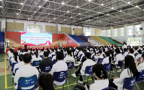 梁松對(duì)團(tuán)省委和企業(yè)代表人員的到來(lái)表示熱烈歡迎和衷心感謝,并指出志愿服務(wù)是社會(huì)文明進(jìn)步的重要標(biāo)志,要大力弘揚(yáng)雷鋒精神,秉承“奉獻(xiàn)、友愛(ài)、互助、進(jìn)步”的志愿服務(wù)理念,不斷提升志愿服務(wù)工作水平,助力海南自由貿(mào)易港建設(shè)貢獻(xiàn)磅礴的青春力量。要加強(qiáng)思想引領(lǐng),提高政治站位,做到黨有號(hào)召、團(tuán)有行動(dòng),切實(shí)把“學(xué)雷鋒”志愿服務(wù)活動(dòng)和深入開(kāi)展學(xué)習(xí)貫徹習(xí)近平新時(shí)代中國(guó)特色社會(huì)主義思想主題教育結(jié)合起來(lái),引導(dǎo)青年學(xué)生熱愛(ài)祖國(guó)、服務(wù)海南、建功自貿(mào)港;要深化合作交流,提升服務(wù)水平,充分發(fā)揮多語(yǔ)種辦學(xué)的優(yōu)勢(shì),繼續(xù)深化與團(tuán)省委、海南經(jīng)發(fā)局和各企業(yè)單位的交流合作,努力在志愿服務(wù)各領(lǐng)域取得新突破;要弘揚(yáng)雷鋒精神,錘煉忠誠(chéng)品格,始終忠誠(chéng)于黨、忠誠(chéng)于人民、忠誠(chéng)于馬克思主義,始終做社會(huì)主義核心價(jià)值觀的堅(jiān)定信仰者、積極傳播者和模范踐行者,讓愛(ài)國(guó)主義的偉大旗幟始終在青年學(xué)生心中高高飄揚(yáng)。