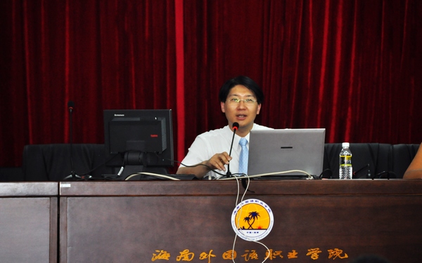 會(huì)談后,安正根院長(zhǎng)在圖書館多功能報(bào)告廳進(jìn)行了赴韓留學(xué)說(shuō)明會(huì),就國(guó)內(nèi)學(xué)生赴韓國(guó)留學(xué)在申請(qǐng)、學(xué)習(xí)、住宿、學(xué)習(xí)費(fèi)用等事宜作了詳細(xì)介紹,并回答了學(xué)生的提問(wèn)。