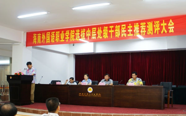 為進一步加強中層管理干部隊伍建設,促進我院各項工作科學管理,10月21日下午,我院在圖書館多功能報告廳召開選拔中層處級干部民主推薦測評大會,選拔四名處級領導干部。學院黨委韓祝疇書記、袁陵南院長、陳禮民副院長、莫運深副院長出席會議并在主席臺就坐,全體教職員工參加了大會。韓祝疇書記主持會議。
