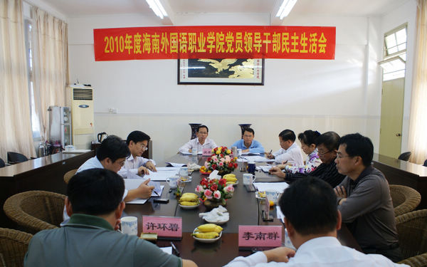 根據(jù)省紀(jì)委、省委組織部和瓊教工委的要求和安排,11月2日下午,我院在辦公樓二樓會(huì)議室召開“貫徹落實(shí)《黨員領(lǐng)導(dǎo)干部廉潔從政若干準(zhǔn)則》、切實(shí)加強(qiáng)領(lǐng)導(dǎo)干部作風(fēng)建設(shè)”2010年度黨員領(lǐng)導(dǎo)干部民主生活會(huì)。省教育廳黨組高度重視,廖清林副廳長(zhǎng)及高教處韓忠澤副處長(zhǎng)親臨出席會(huì)議,黨委韓祝疇書記、袁陵南院長(zhǎng)、陳禮民副院長(zhǎng)、莫運(yùn)深副院長(zhǎng)參加會(huì)議,黨委辦公室、組織統(tǒng)戰(zhàn)部、學(xué)院辦公室、人事處主要負(fù)責(zé)人列席會(huì)議。