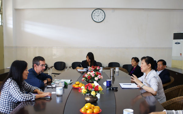 會上,袁陵南院長代表我院對羅斯?杰尼斯副院長的來訪表示歡迎,并簡單向來賓介紹了學院發(fā)展歷程、師資力量、人才培養(yǎng)模式、外籍教師隊伍等基本情況。發(fā)言中,袁院長還表示,希望今后兩院間能夠廣泛開展師生互訪等方面的交流合作,不斷拓展合作范圍、創(chuàng)新合作形式。
