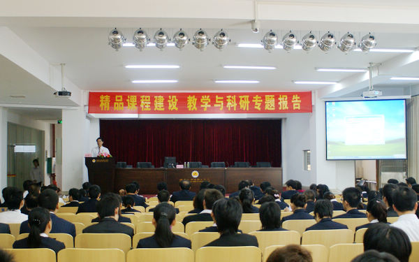 景志華教授首先作“省級精品課程建設(shè)”專題報告。景教授結(jié)合長春工程學(xué)院省級精品課程(翻譯)建設(shè)的實際案例,為我院精品課程的建設(shè)“出謀獻策”,從省級精品課程建設(shè)的申報條件、師資隊伍情況、學(xué)術(shù)水平、責(zé)任人教科研成果、獲獎情況等對申報省級精品課程所必備的條件作了詳細的講解,旨在讓我院教師真正掌握省級精品課程建設(shè)的重要意義和艱巨任務(wù)。在談到長春工程學(xué)院省級精品課程(翻譯)的成功經(jīng)驗時,景教授著重談了“資深教師對年輕教師的傳幫帶模式”,即資深老教師要負責(zé)幫助新教師成長,監(jiān)督新教師授課并進行指導(dǎo)和整改的模式。這種看似傳統(tǒng)的方法,在形成了良性循環(huán)之后,為新教師的成長帶來了不可磨滅的效用,可極大推動教學(xué)團隊的整體素質(zhì)。