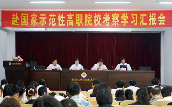 會上,考察組成員結合考察學習的體會和思考,運用大量的考察圖片、文字資料和統(tǒng)計數據,詳細分析了此次訪問的這兩所高職院校在專業(yè)建設、課程建設、實訓建設、人才培養(yǎng)模式創(chuàng)新以及校企合作實踐等方面取得的成績、經驗和對我院發(fā)展的啟示。