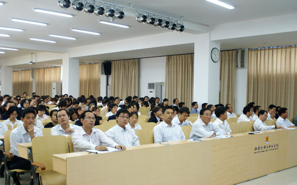 11月23日下午,我院在圖書館多功能報告廳舉辦了此次外出考察學習匯報會,學院黨委韓祝疇書記、袁陵南院長、陳禮民副院長、莫運深副院長出席并在主席臺就坐,全體教職工參加聆聽了匯報。