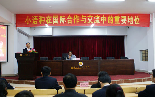 12月16日下午,我院圖書(shū)館多功能報(bào)告廳內(nèi)人頭涌動(dòng)、氣氛熱鬧。當(dāng)一句句鏗鏘有力、字字珠璣的話語(yǔ)從坐在主席臺(tái)上的國(guó)家外國(guó)專(zhuān)家局資深顧問(wèn)吳星彬博士口中“蹦出”時(shí),臺(tái)下都報(bào)以了熱烈的掌聲。作為一位長(zhǎng)期從事外事、僑務(wù)工作的語(yǔ)言專(zhuān)家,吳星彬博士此次在百忙之中到訪我院講學(xué),結(jié)合個(gè)人豐富的閱歷做“小語(yǔ)種在國(guó)際合作和交流中的重要地位”講座,與我院廣大師生分享了他在小語(yǔ)種學(xué)習(xí)應(yīng)用及外事工作上的經(jīng)驗(yàn)、領(lǐng)悟和見(jiàn)地,用其扎實(shí)的專(zhuān)業(yè)素養(yǎng)和深厚的知識(shí)底蘊(yùn)描繪了一幅關(guān)于小語(yǔ)種的大世界,讓每一位觀眾都感到受益匪淺。