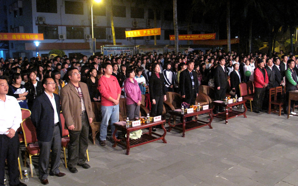12月19日晚上8點,商務英語系成立歡慶暨迎新文藝晚會在學院的1號教學樓前拉開了帷幕,此次晚會由商務英語系主辦,三亞珠江南田溫泉度假區(qū)、海南銅鼓嶺天福云龍灣度假村等單位贊助協(xié)辦。學院袁陵南院長、韓祝疇書記和莫運深副院長,以及商務英語系的全體師生共同到場觀看了此次晚會。