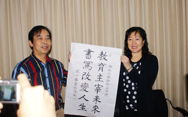 “海南是多么美麗的地方,我每年冬天都會住在海南?!敝v座伊始的一句開場白引來全場師生會心的笑聲和如潮的掌聲,師生們與這位書法大師間距離被瞬間拉近。