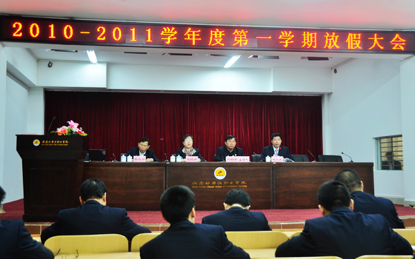 1月19日,我院在圖書館多功能報告廳召開2010—2011學(xué)年度第一學(xué)期放假大會,對寒假期間各項(xiàng)工作做了安排部署。學(xué)院黨委韓祝疇書記、袁陵南院長、陳禮民副院長、莫運(yùn)深副院長及全體教職員工(含離退休職工)出席大會。大會由黨委韓祝疇書記主持。